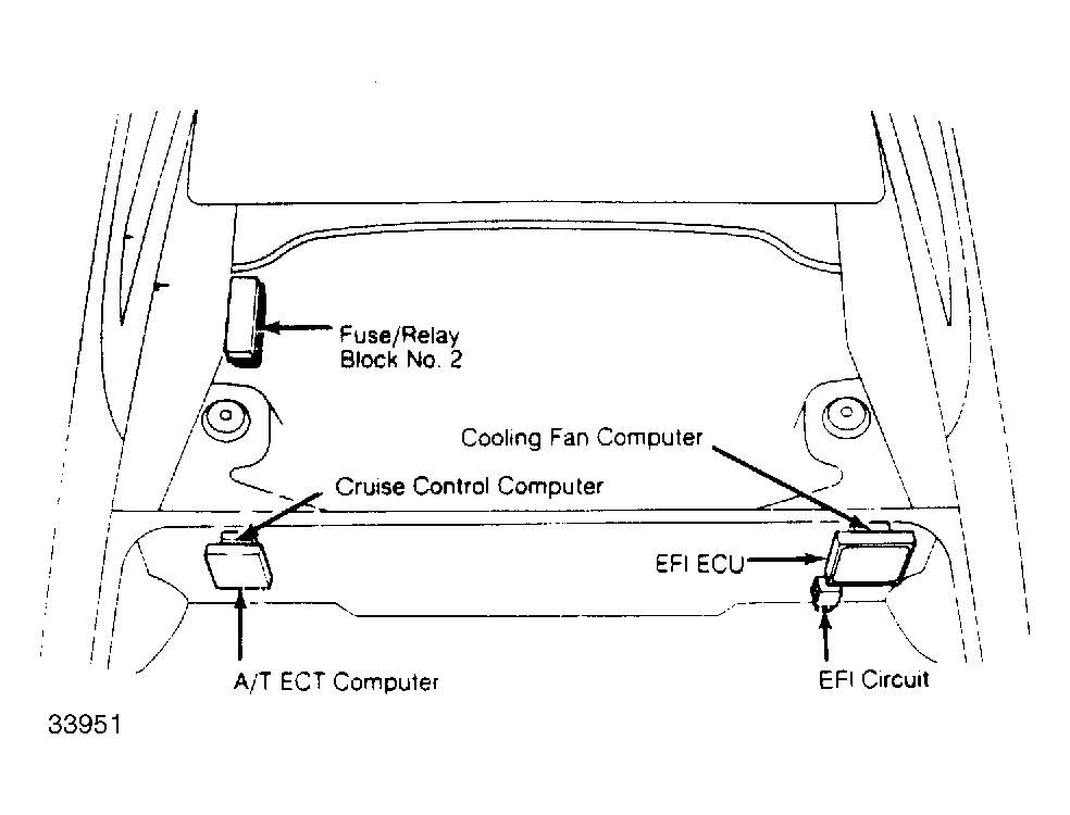 | Electronic Controlled Transaxle (ECT) Computer | On left front corner of rear luggage compartment. See Figure. |