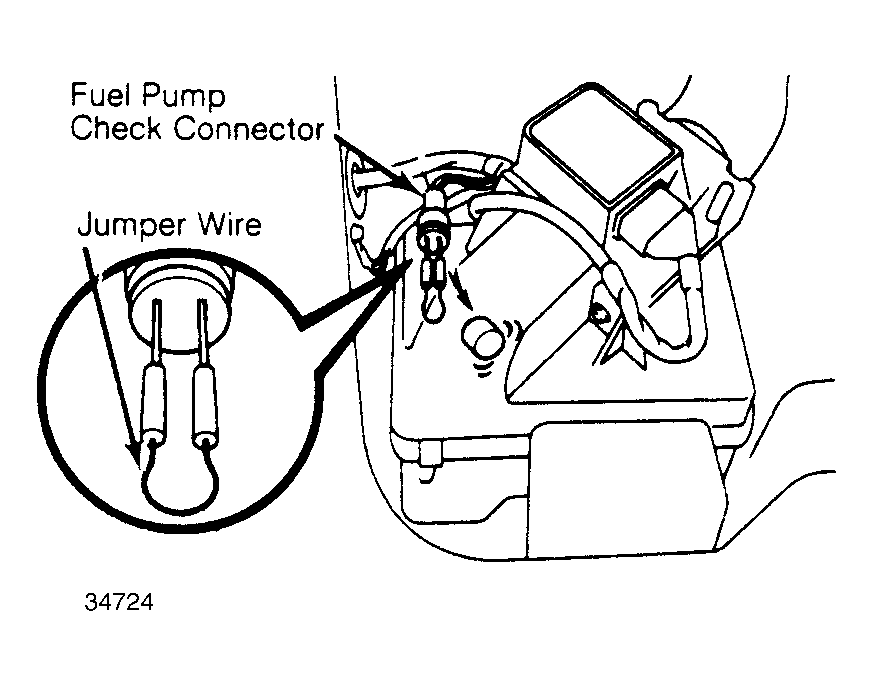 1. Turn ignition switch on. On Cressida, MR2, 4Runner and Pickup models, insert jumper wire between terminals "Fp" and "+ B" of service connector. On all other models, short both terminals of fuel pump check connector. See Fig 1 or Fig 2.