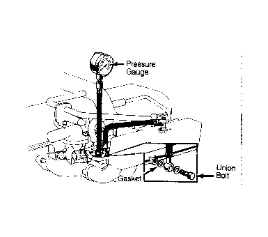 5. Turn ignition off. If pressure drops quickly, check fuel pump, pressure regulator, and/or injectors. Remove pressure gauge. Using new gaskets, install removed parts.