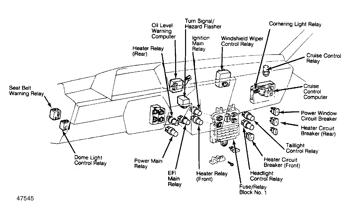 Behind center of dash, above windshield wiper relay. See Figure. |