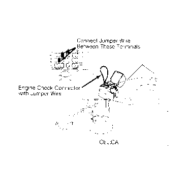- To enter diagnostic mode, turn ignition on. DO NOT start engine. Install jumper wire between terminals of engine check connector. See Fig 1.