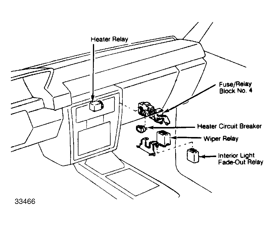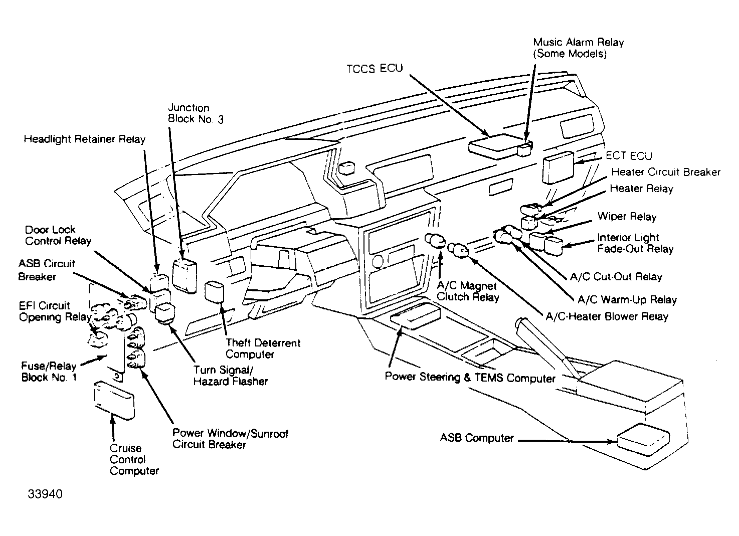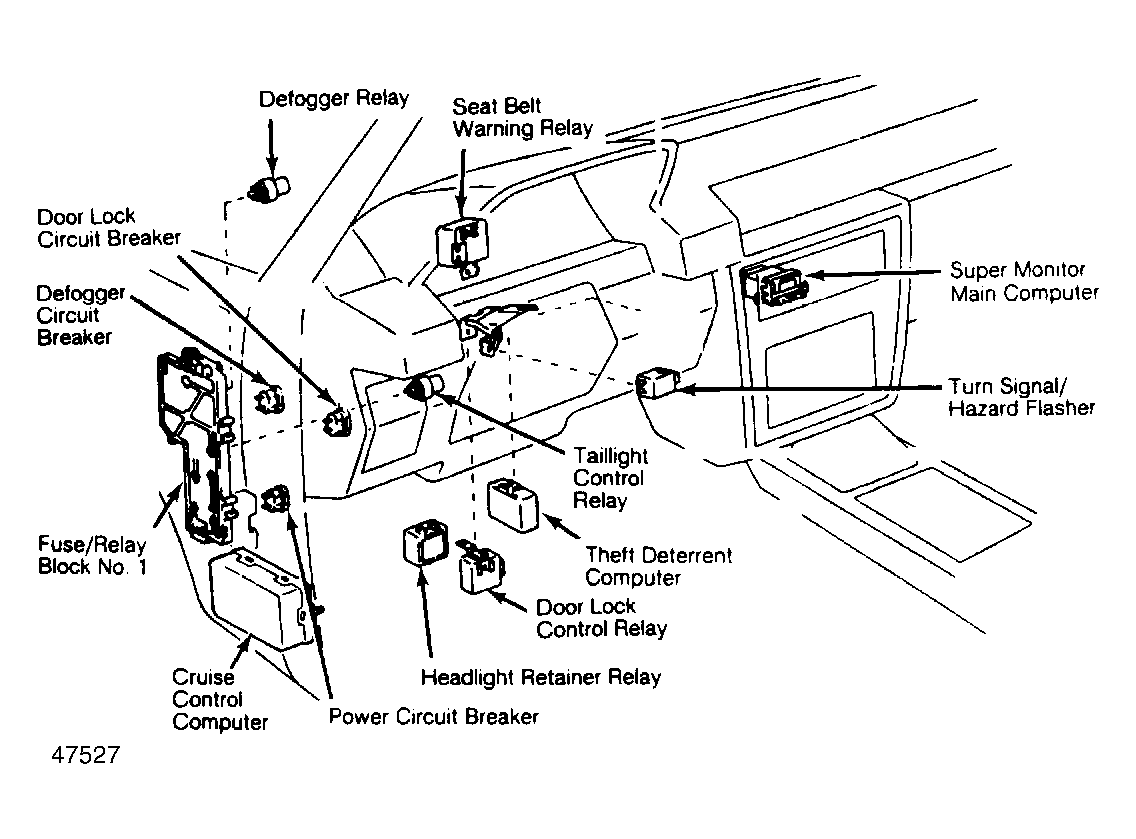| Auto. Shoulder Belt (ASB) | On fuse/relay block No. 1. See Figure. | ||