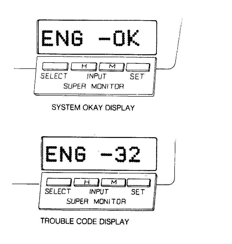 - After a short pause, hold in "SET" key for at least 3 seconds. If system is normal, "ENG -OK" will appear on the screen. If malfunction exists, the trouble code number will appear on the screen. If more than one number exists, there will be a 3 second pause between each number.
