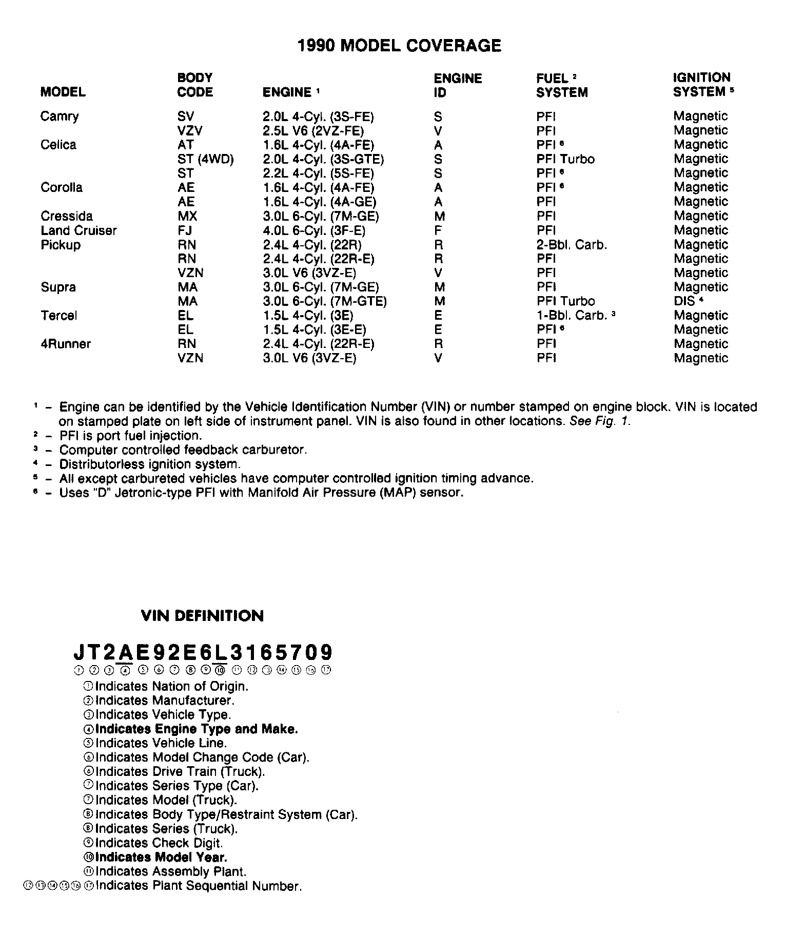 Home >> Toyota >> 1989 >> Corolla LE, Automatic >> Repair and Diagnosis >> Engine Performance >> Application >> Engine/VIN Id >> Identification >> Model Coverage
