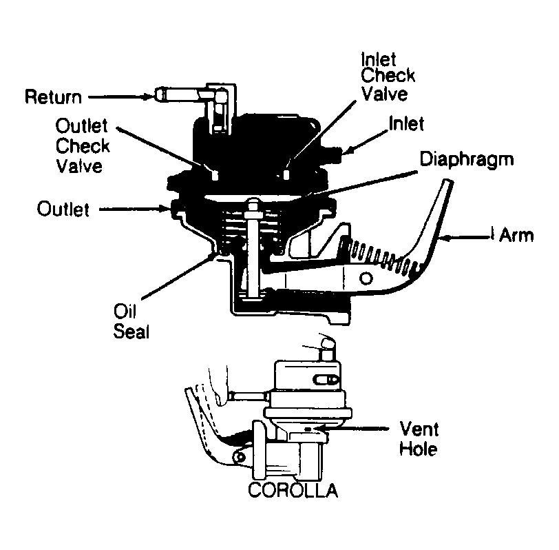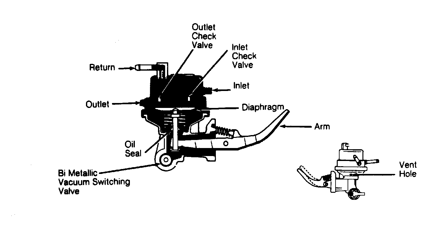 - Check pump diaphragm. Block off inlet and outlet fittings. Ensure pump arm locks. Check oil seal. Block vent hole and ensure fuel pump arm locks. If fuel pump does not operate as described, replace pump.