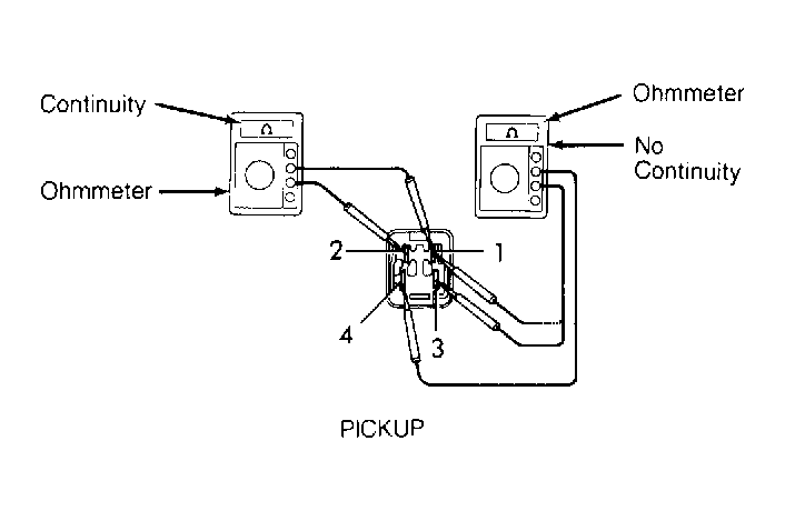 - On Pickup, also check that there is no continuity between terminals No. 1 and 4. See Fig 3 & 44. On all models, apply battery voltage to terminals No. 1 and 2. See Fig 1, Figure, Figure or Figure.