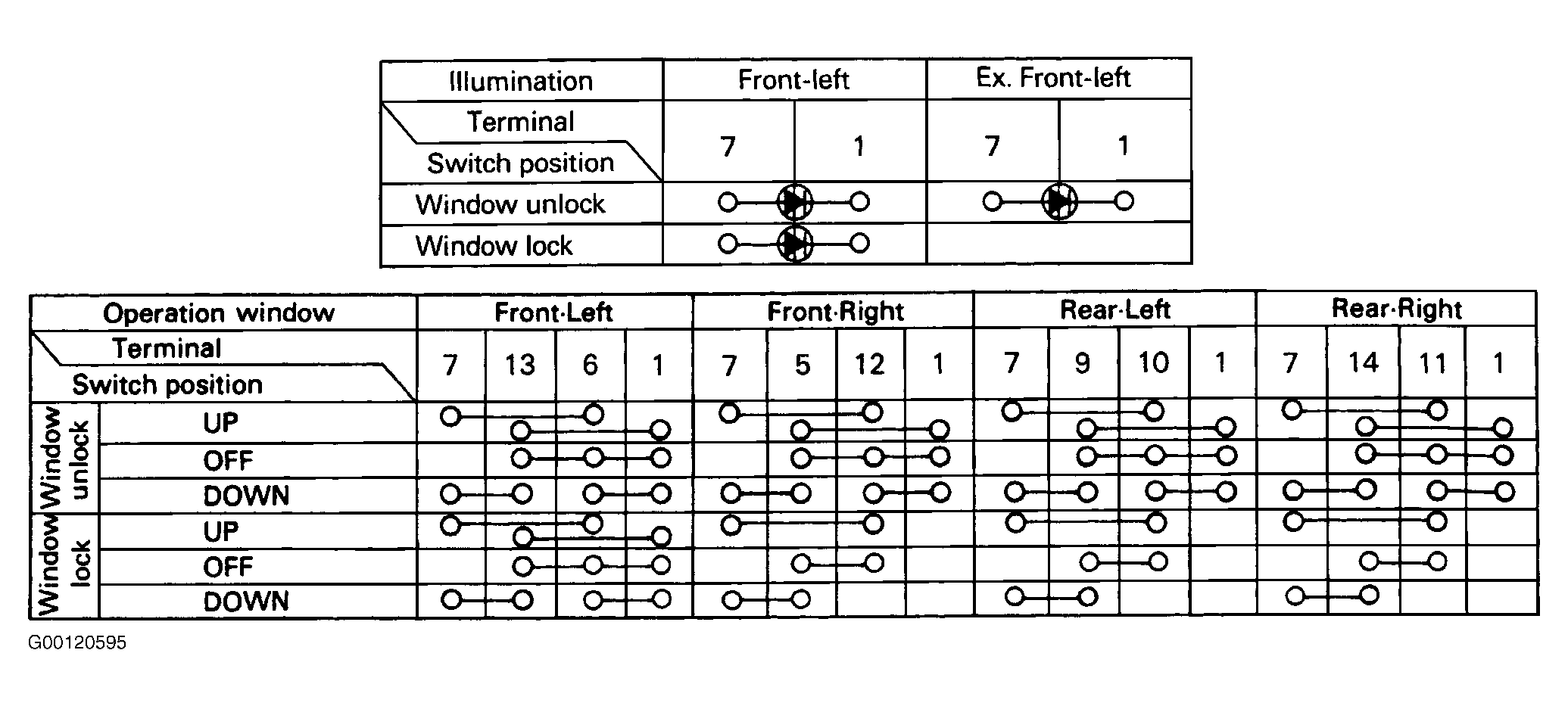 Inspect the switch continuity between terminals. See Fig 1 and Fig 2 . If continuity is not as specified, replace the switch.