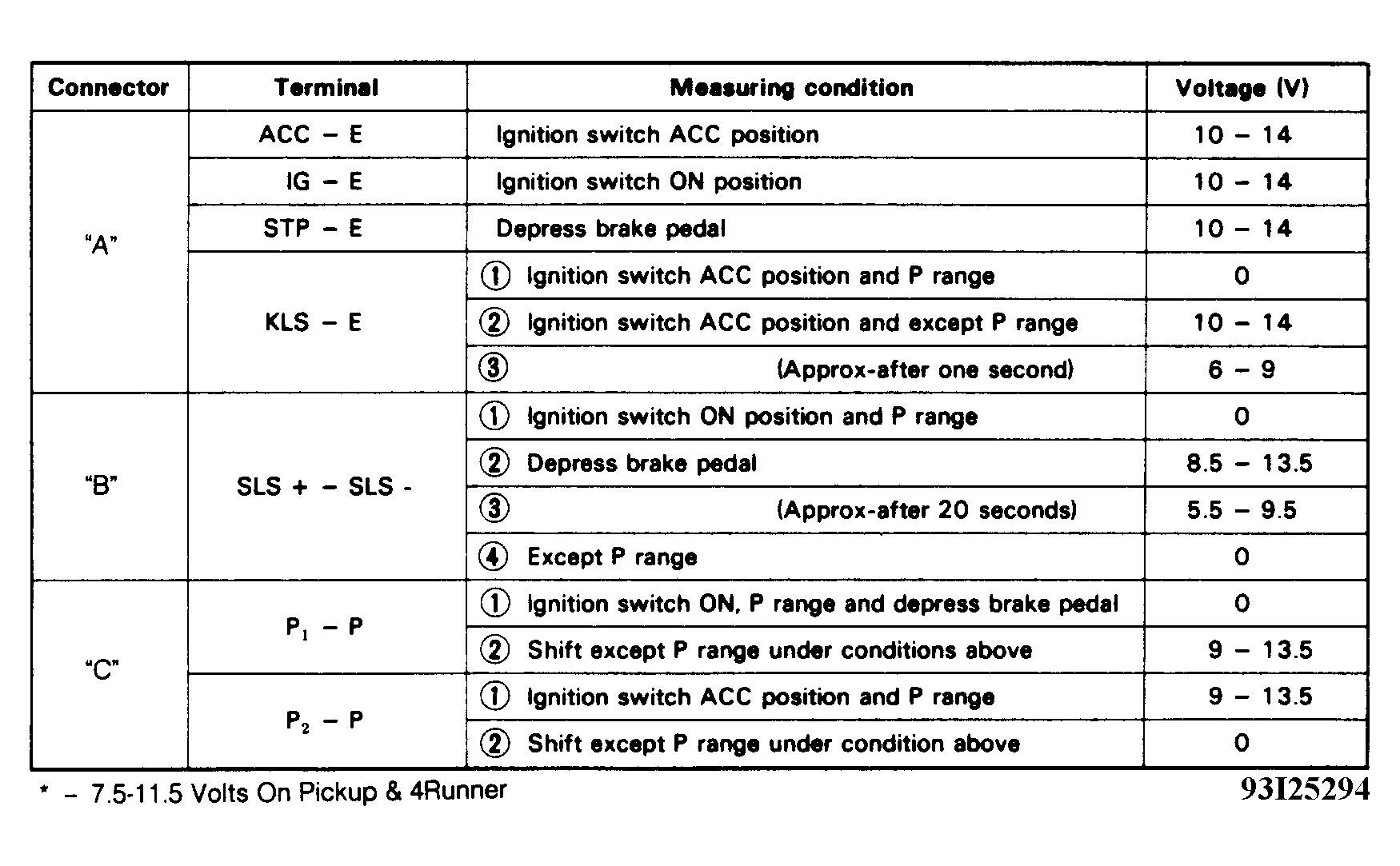 - Obtain access to Electronic Control Unit (ECU). See Figure. Turn ignition on. Using voltmeter, check voltage between designated terminals on ECU with connector installed on ECU. Voltage should be as specified. See Fig 1 and Fig 2 .