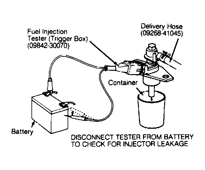 5. Connect probes of Fuel Injector Tester (09842-30070) to battery. See Fig 2. Connect other end of tester to cold start injector.