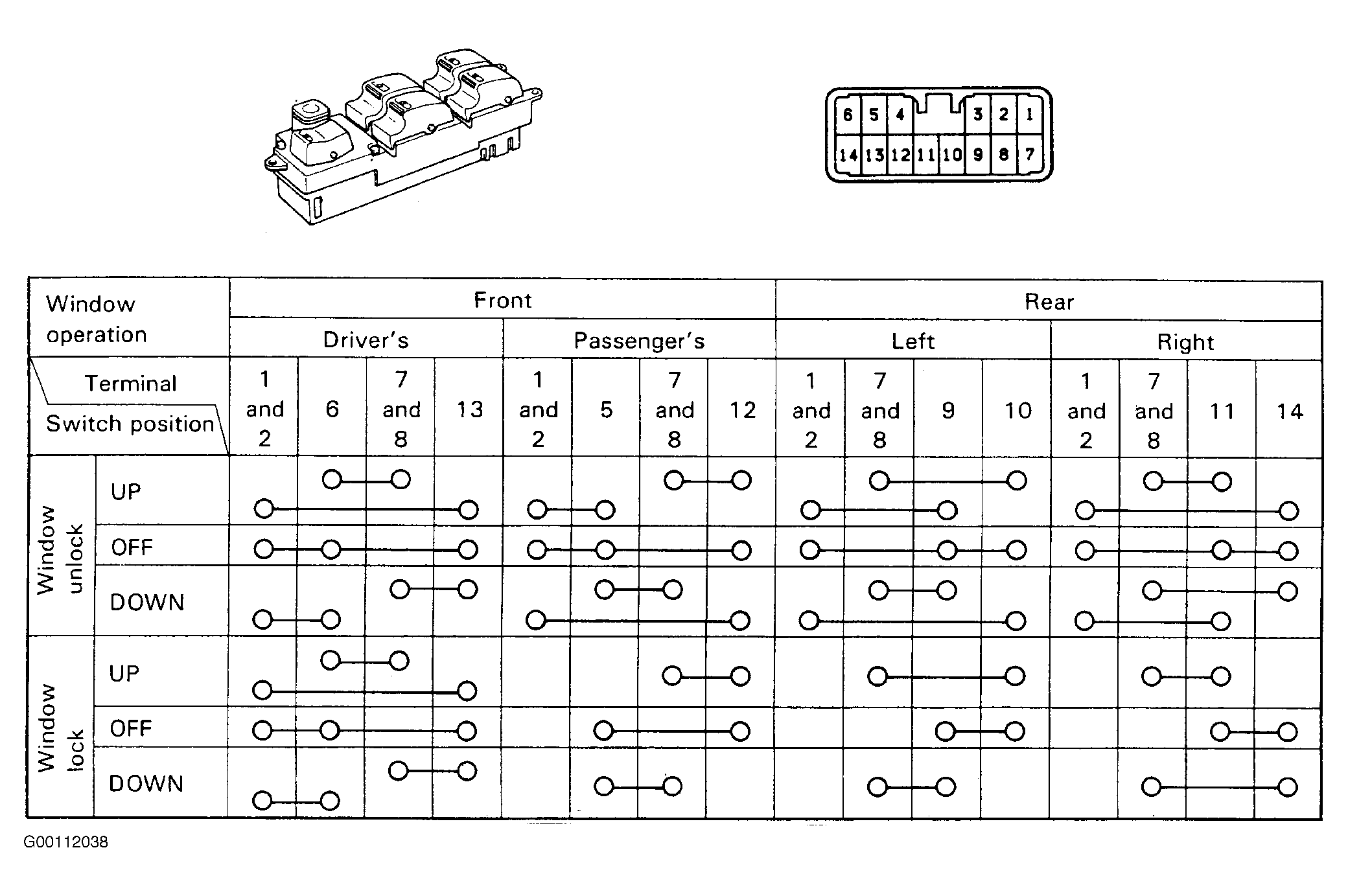 Inspect switch between terminals. See Fig 1. If continuity is not as specified, replace the master switch.