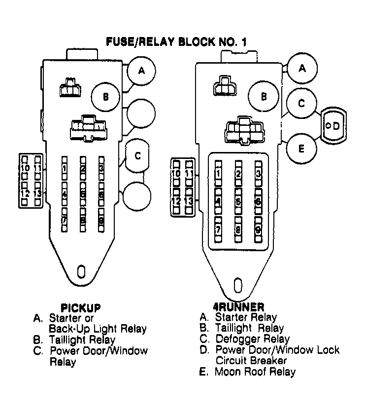 | Power Door/Window Lock | In fuse/relay block No. 1. See Figure. | |