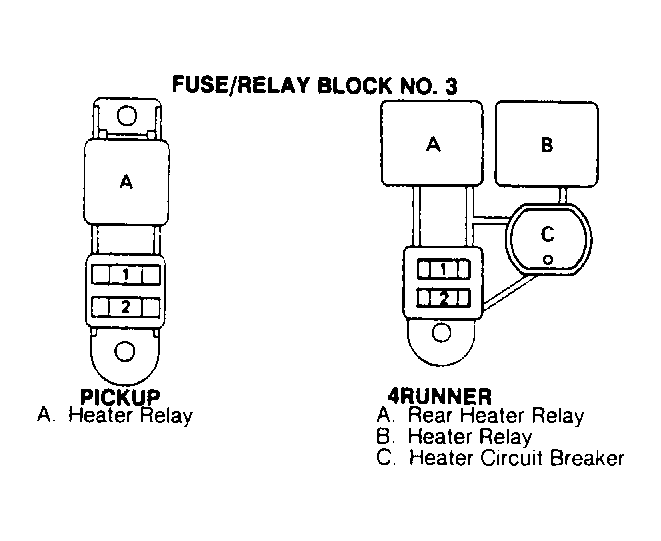 | Heater | In fuse/relay block No. 3. See Figure. | |