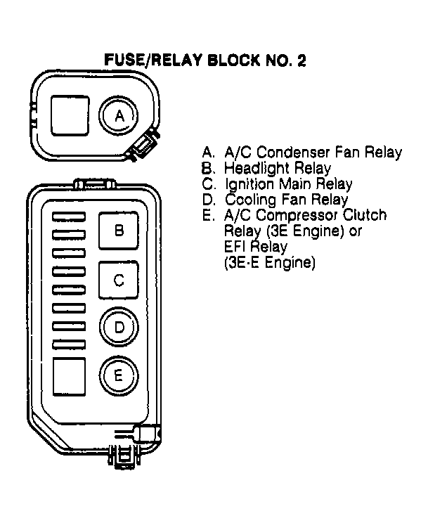 | Fuse/Relay Block No. 2 | On left front shock tower. See Figure & Figure . |