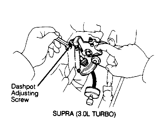 - Raise engine speed to 3000. Pinch vacuum hose between dashpot and Vacuum Transmitting Valve (VTV). See Fig 1 and Fig 2. Release throttle valve. Ensure dashpot is set and engine RPM is 2000. See Fig 3 and Fig 4.