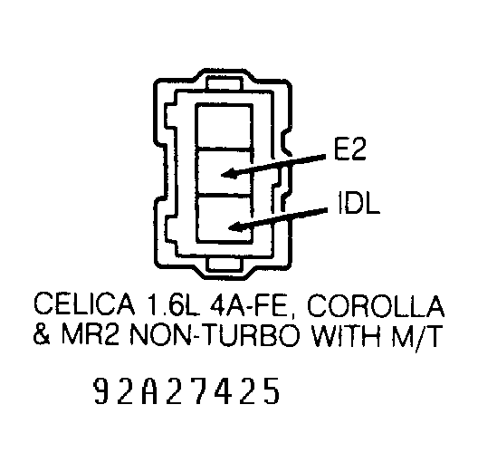 - Disconnect electrical connector from throttle position sensor. Install jumper wire between IDL and E2 terminals on wiring harness side. See Fig 1.