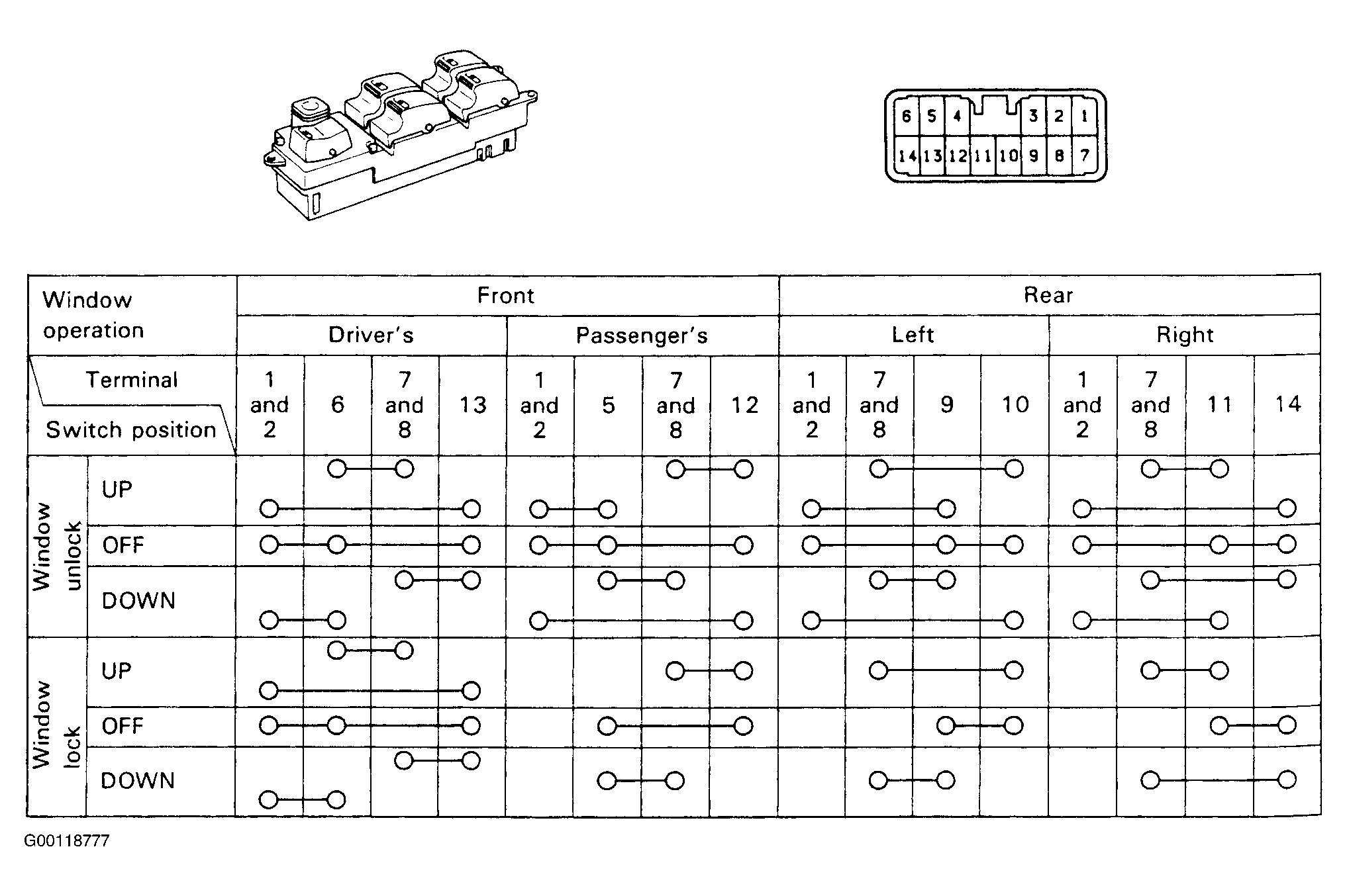 Inspect the switch continuity between specified terminals. See Fig 1. If continuity is not as specified, replace the switch.