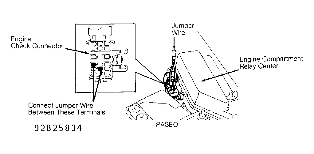 Fig 1: Installing Jumper Wire In Engine Check Connector (Paseo)