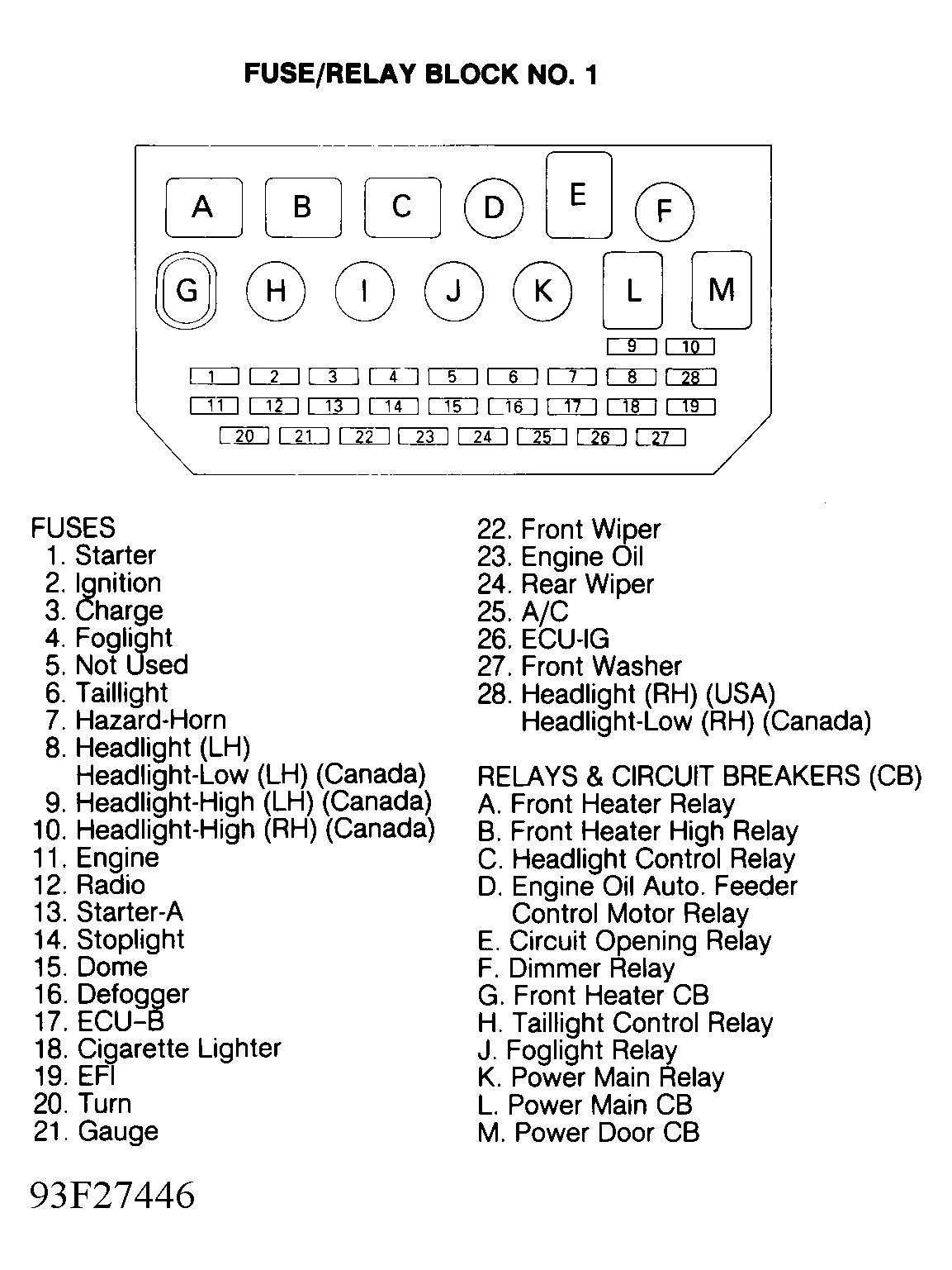 | Power Main CB (Accessories) | In fuse/relay block No. 1. See Figure. | |