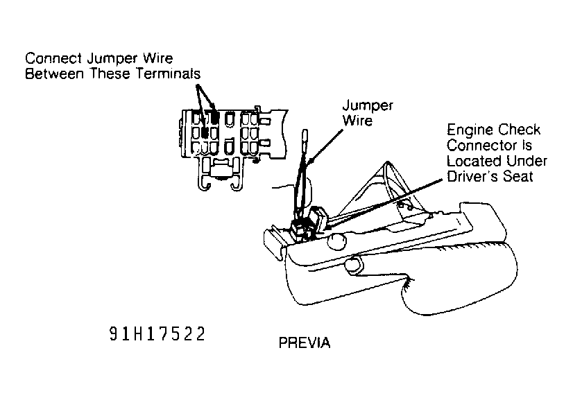 - Turn ignition on with engine off. Install jumper wire between terminals TE1 (or T) and E1 in engine check connector. See Fig 1.