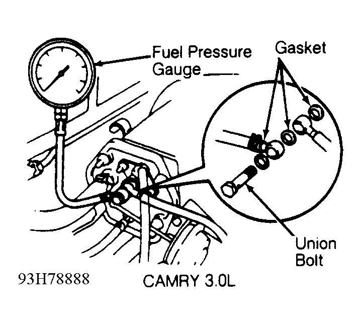 Home >> Toyota >> 1993 >> Camry SE, Automatic >> Repair and Diagnosis >> Engine Performance >> System >> Engine Controls - Basic Testing - V6 >> Fuel System >> Fuel Pressure