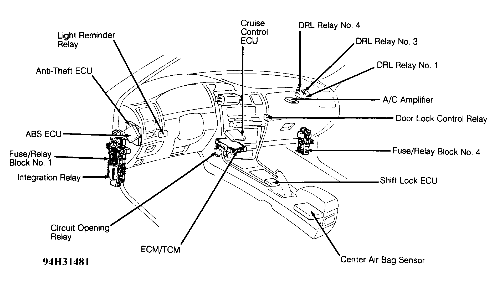 | Engine Control Module ECM | Under center of dash, behind center of console. See Figure & Figure . |