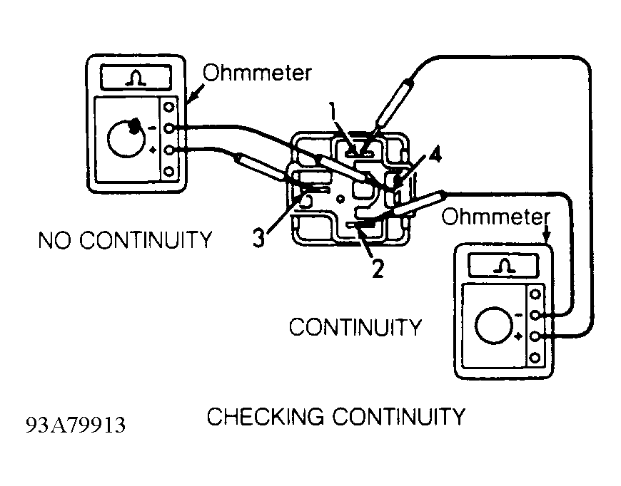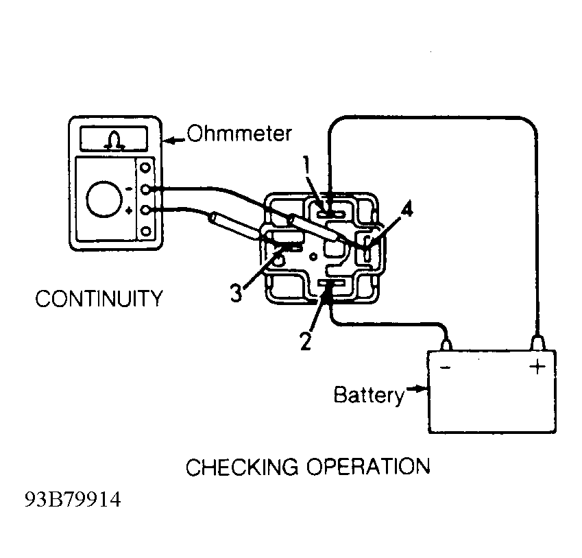 - Check EFI main relay operation by applying battery voltage and ground and checking continuity between specified terminals. See Fig 1 and Fig 2 . Replace EFI main relay if defective.