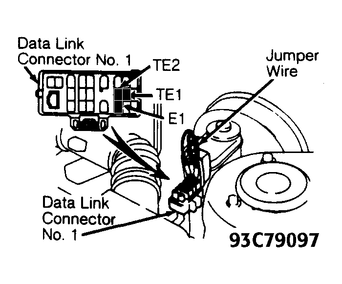 - Install Jumper Wire (SST 09843-18020) between terminals TE2 and E1 in Data Link Connector (DLC) with ignition off. See Fig 1.NOTE: DLC No. 1 is used on these models. See Fig 1.