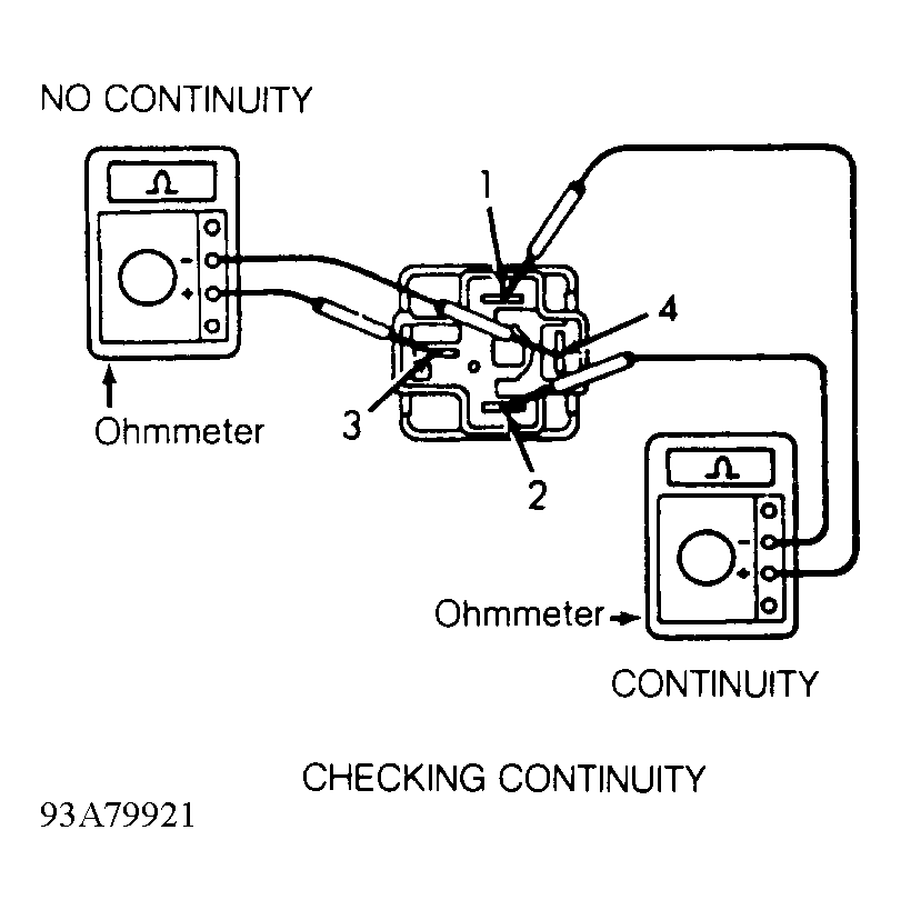 - Ensure ignition is off. Remove EFI main relay. See EFI MAIN RELAY LOCATION table. Using ohmmeter, check continuity between specified terminals. See Fig 1 and Fig 2.