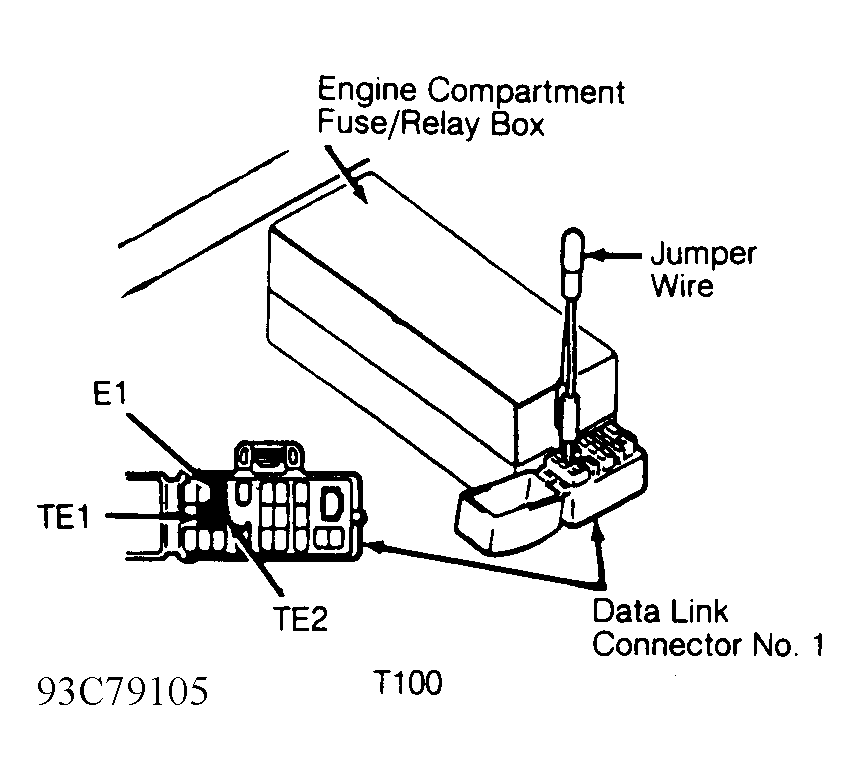 NOTE: Test Mode will not operate if jumper wire is installed between terminals TE2 and E1 in Data Link Connector (DLC) AFTER ignition is turned on.