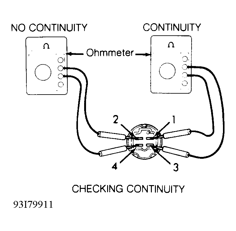 - Check EFI main relay operation by applying battery voltage and ground and checking continuity between specified terminals. See Fig 1 and Fig 2. Replace EFI main relay if defective.