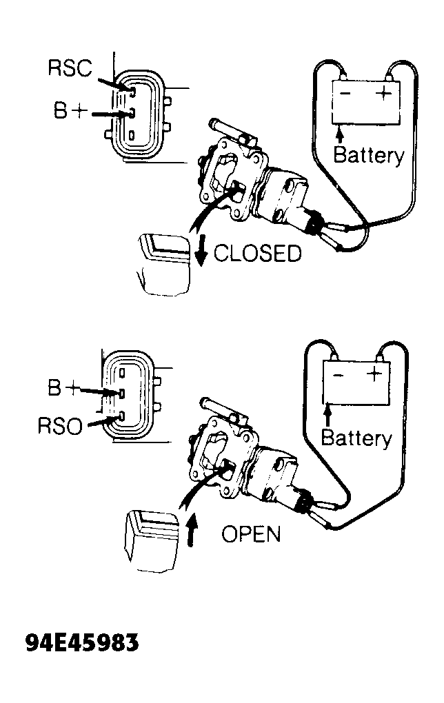 - To check IAC valve operation, remove IAC valve from throttle body. Connect battery voltage and ground to proper terminals and ensure valve opens and closes. See Fig 3. Replace IAC valve if defective.