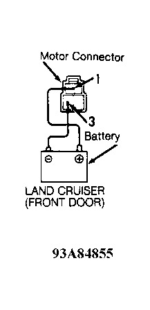 Using a 12-volt battery, connect jumper wire from positive battery terminal to terminal No. 1 of power window motor. See Fig 1. Connect jumper wire from negative battery terminal to terminal No. 3 of power window motor. Motor should operate clockwise. Reverse jumper wire positions. Motor should operate counterclockwise. If motor does not test as described, replace motor.
