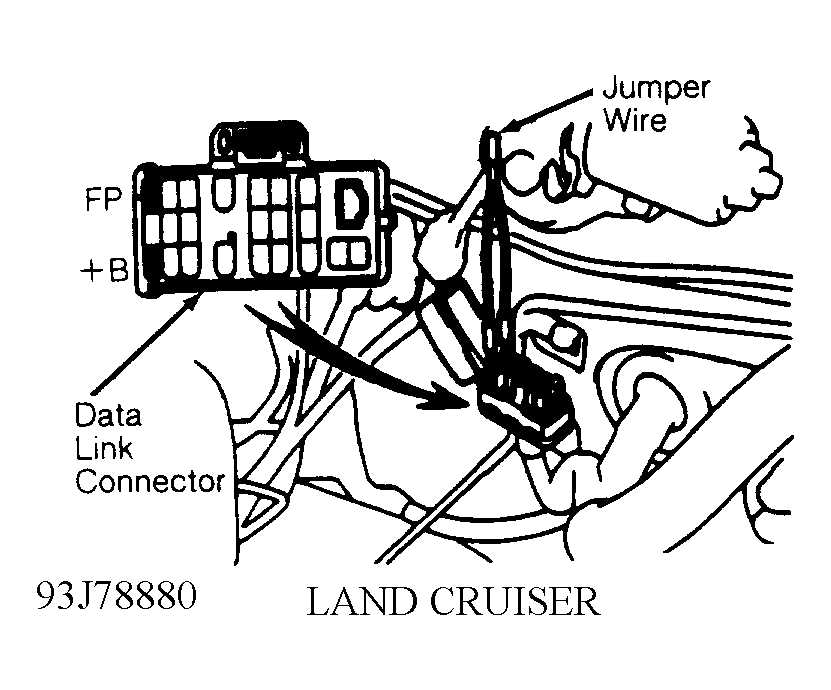 1. Install Jumper Wire (SST 09843-18020) between +B and FP terminals of data link connector. See Fig 1. Data link connector is located in engine compartment.