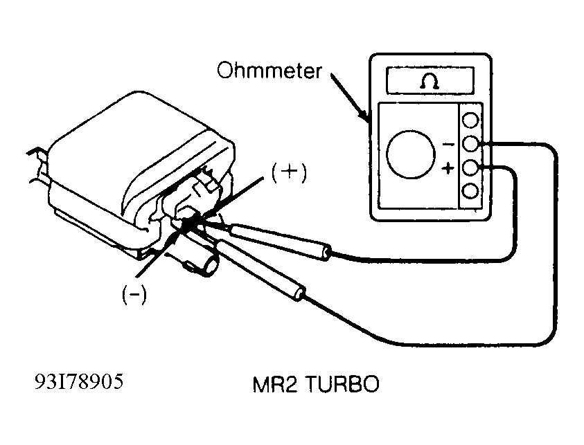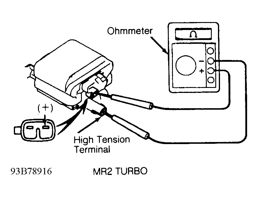 - Disconnect wiring from ignition coil so ignition coil is isolated from system. Using ohmmeter, check primary resistance between ignition coil positive (+) and negative (-) terminals. See Fig 1 and Fig 2.