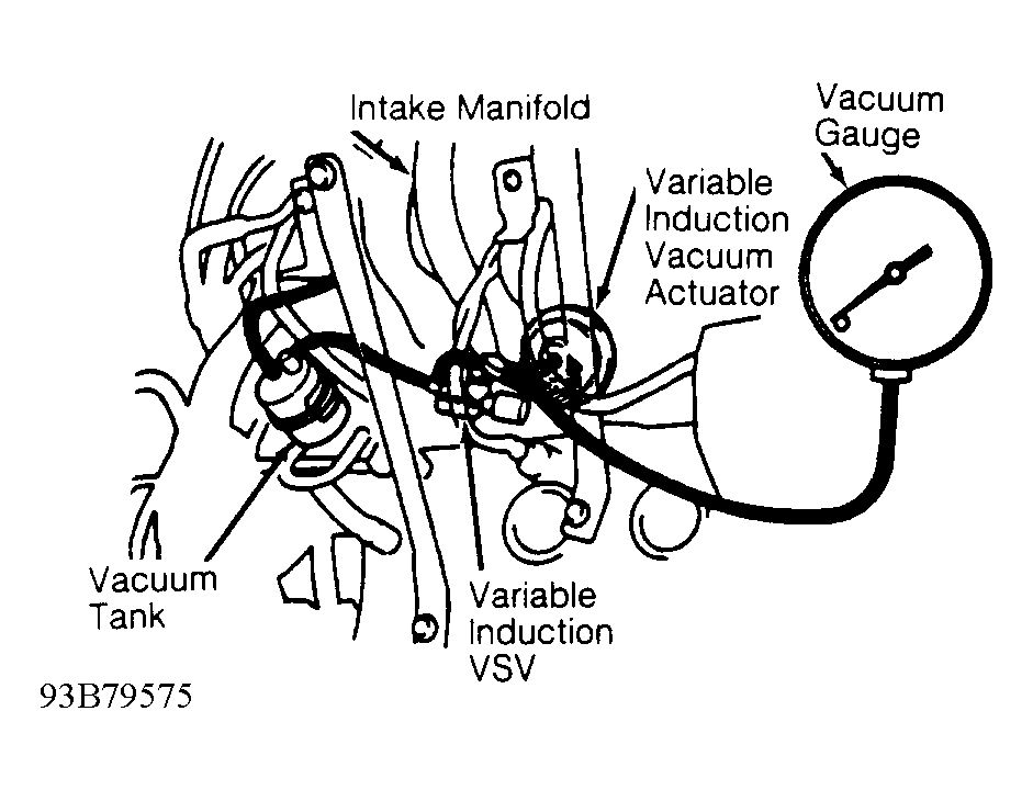 - Warm engine to normal operating temperature. Shut engine off. Using 3-way connector, install vacuum gauge in vacuum line between variable induction Vacuum Switching Valve (VSV) and variable induction vacuum actuator. Variable induction VSV is located below intake manifold, near cylinder block. See Fig 1.NOTE: Variable induction VSV may also be referred to as the T-VIS VSV.