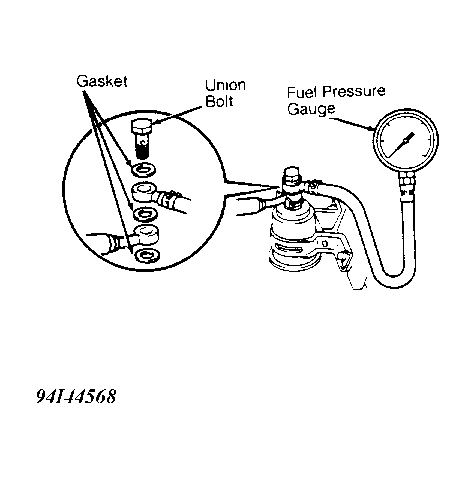 - Remove union bolt and gaskets. Install Fuel Pressure Gauge (SST 09268-45012) using NEW gaskets. See Fig 1. Tighten union bolt. Reconnect negative battery cable.
