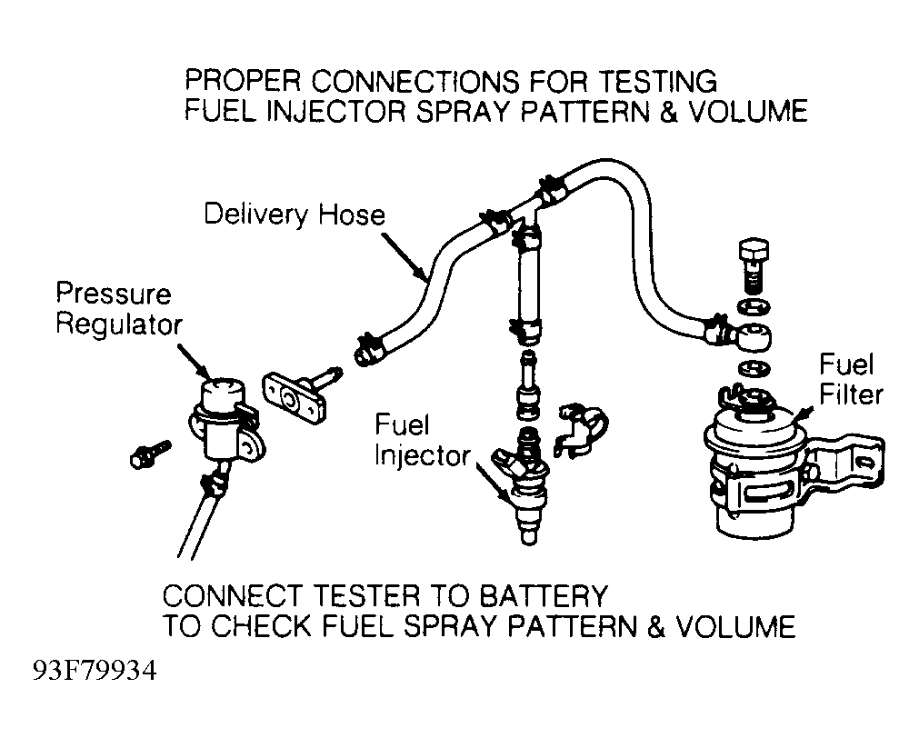 Disconnect fuel hose from fuel filter outlet. Use Delivery Hose (09268-41045) to install fuel injector between fuel filter and fuel pressure regulator. See Fig 1 and Fig 2.