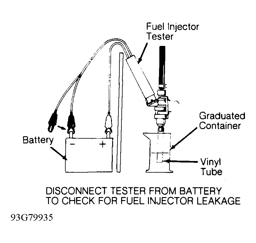 - Connect fuel injector tester to fuel injector for 15 seconds. Use Fuel Injector Tester (09842-30070).