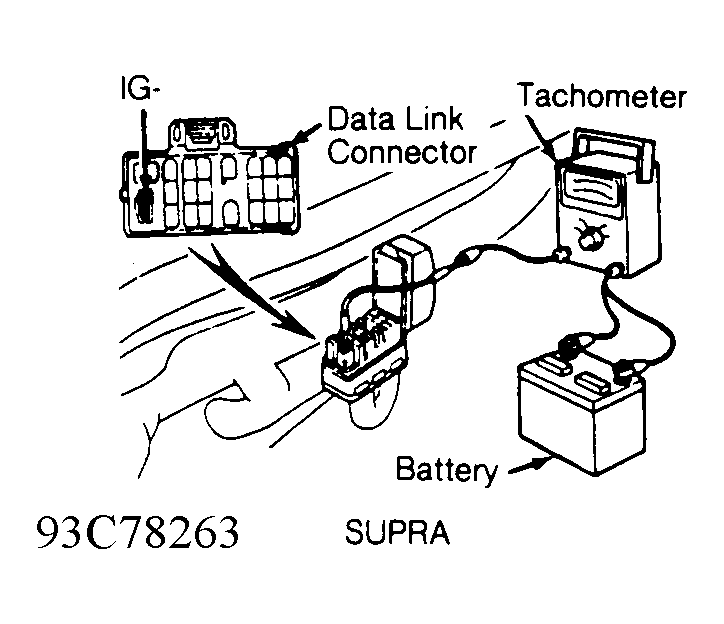 - Warm engine to normal operating temperature. Shut engine off. Connect tachometer to proper terminals of data link connector. See Fig 2 and Fig 3.