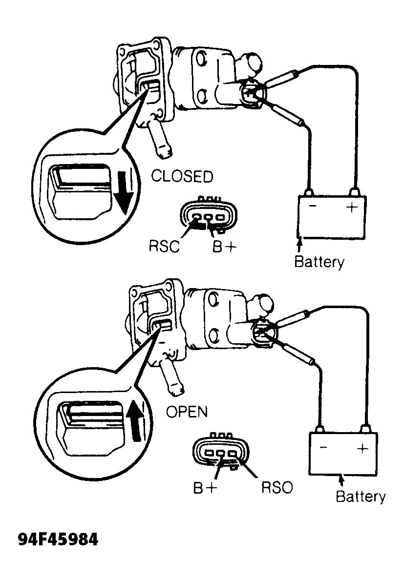 7. To check IAC valve operation, remove IAC valve from throttle body. Connect battery voltage and ground to proper terminals and ensure valve opens and closes. See Fig 2. Replace IAC valve if defective.