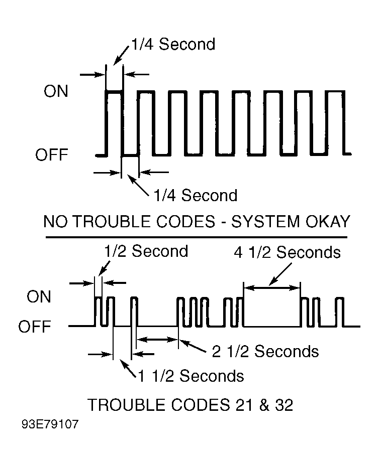 - If more than one trouble code is stored, a 2 1/2-second pause will occur before next trouble code is flashed. Once all trouble codes are displayed, a 4 1/2-second pause will occur, then trouble code(s) will be repeated.