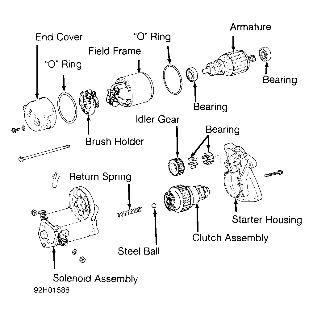- Remove starter. Connect ammeter in series between starter motor terminal No. 30 (battery terminal) and a fully charged 12-volt battery. Connect battery negative to starter case ground. See Fig 1 and Figure . Connect voltmeter to battery to observe voltage draw readings.
