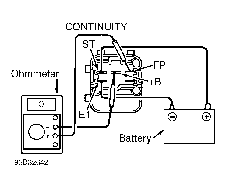 - Check circuit opening relay operation by applying battery voltage and ground and checking continuity between specified terminals. See Fig 2. Replace circuit opening relay if defective.