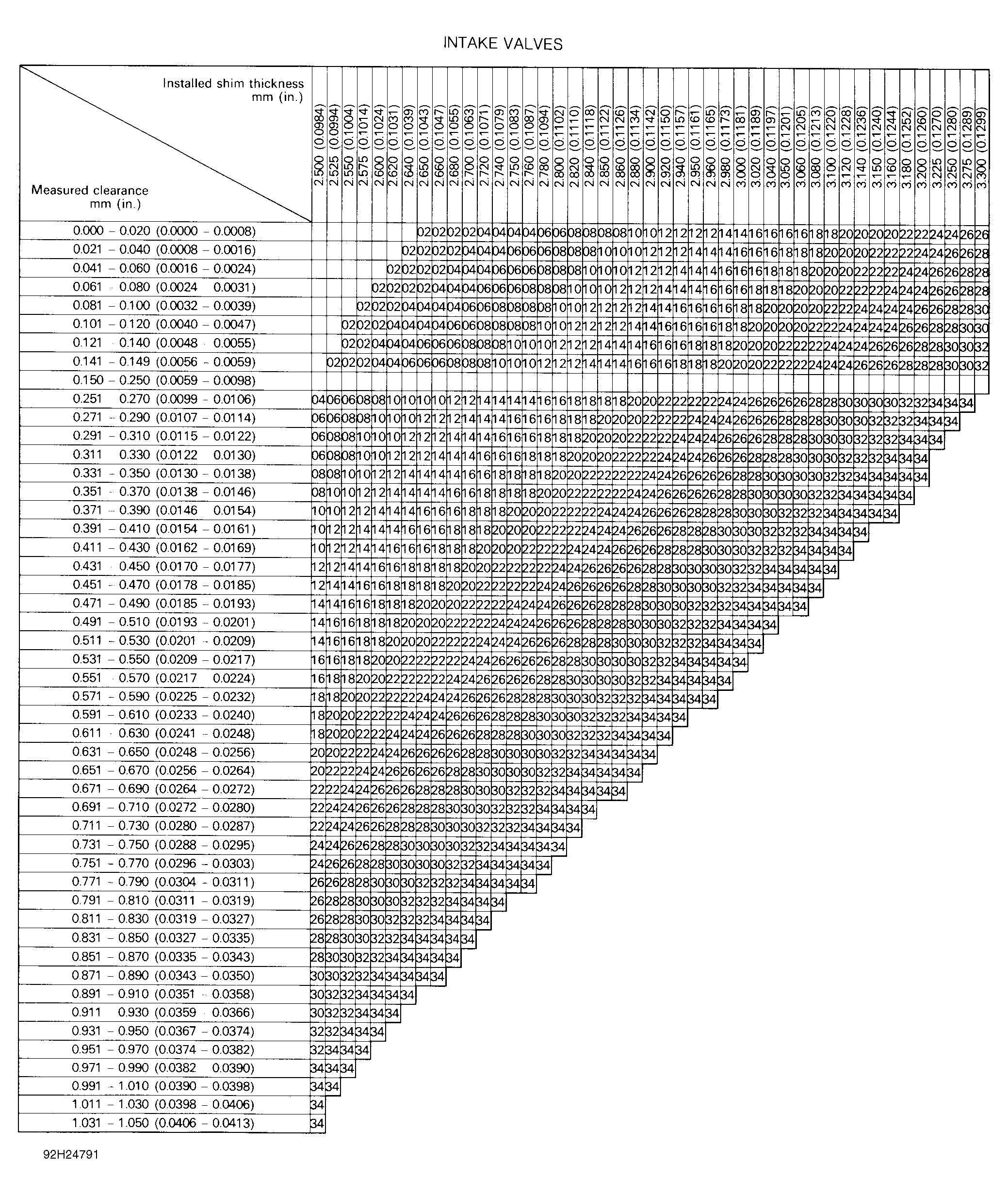 4-CYLINDER VALVE CLEARANCE SPECIFICATIONS