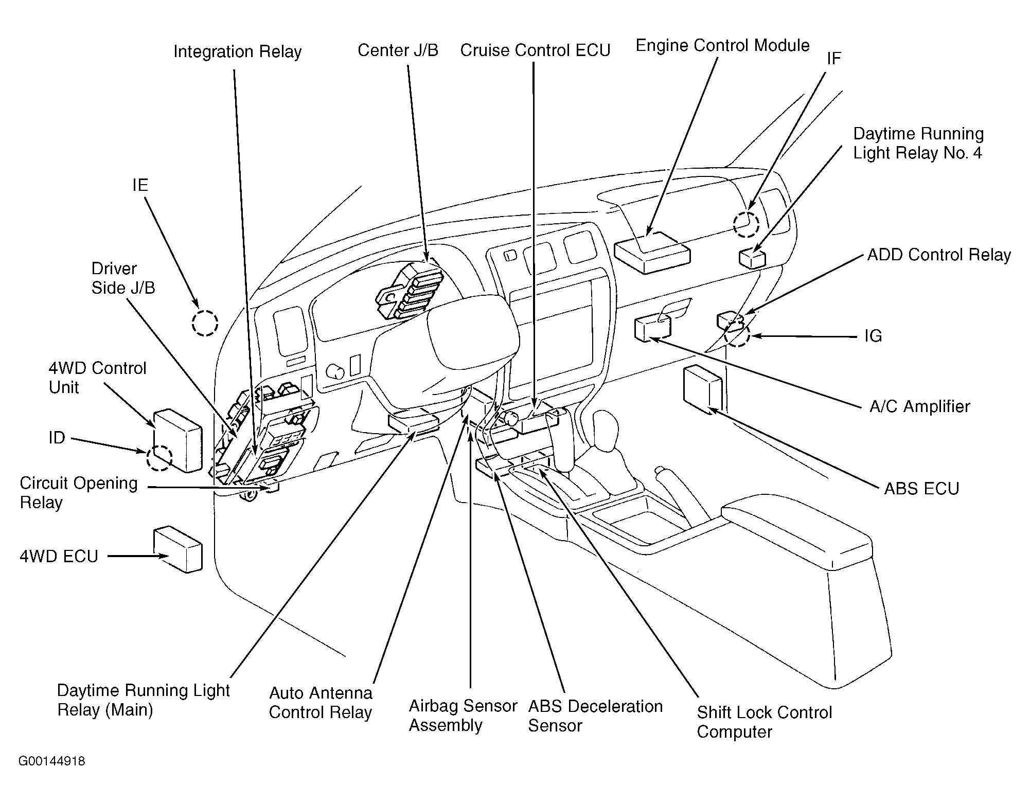 | Shift Lock Control Computer | Under center of dash, near front of center console. See Figure. |