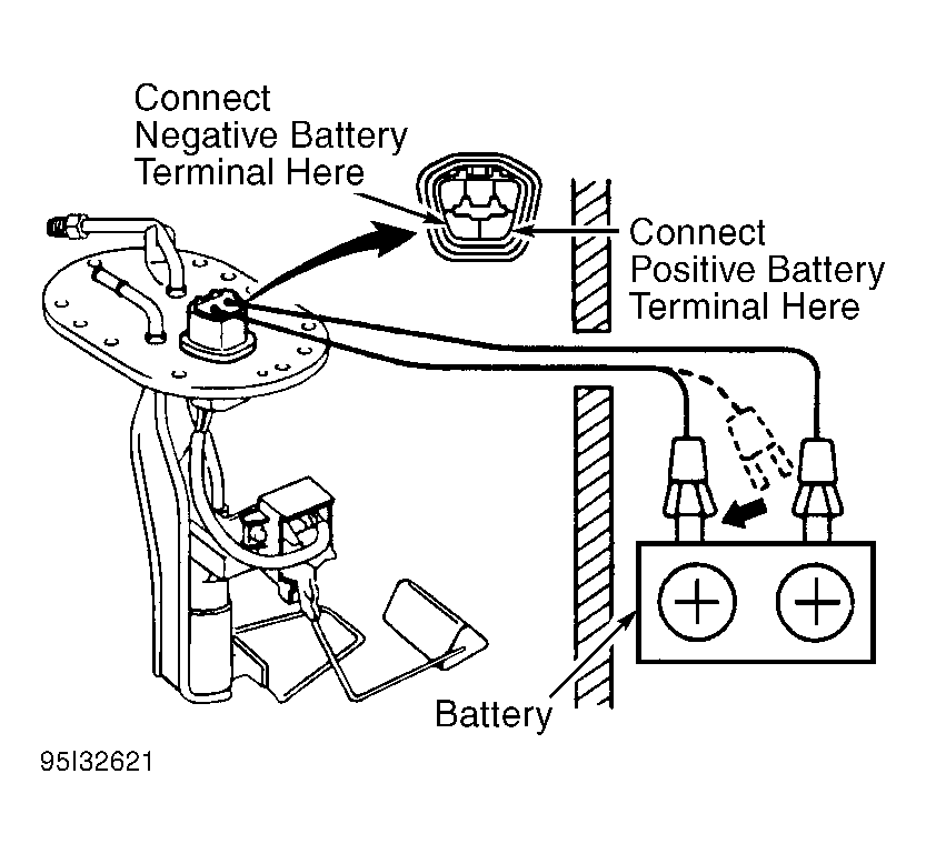 NOTE: Fuel pump may also be activated by connecting battery voltage to specified terminals on fuel pump. See Figure.
