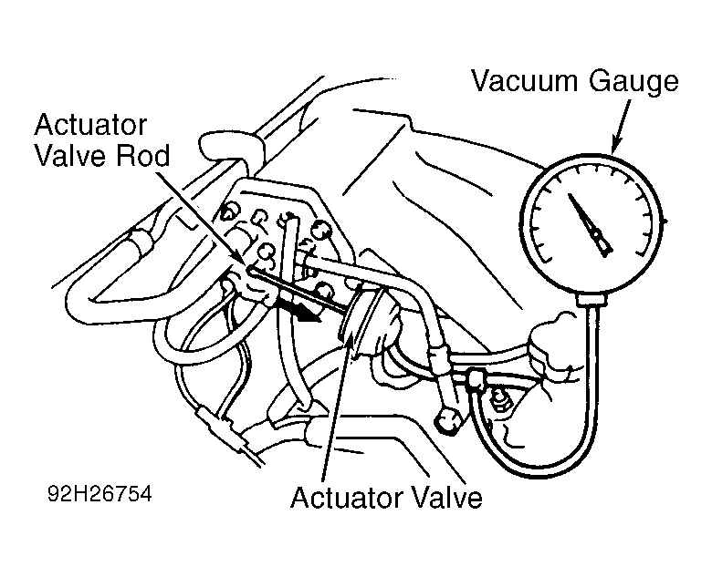 - Disconnect vacuum hose from actuator valve. Using vacuum pump, apply 8 in. Hg of vacuum to actuator valve. Ensure actuator valve rod pulls inward and remains pulled inward for at least one minute. Replace actuator valve if defective. If actuator valve operates correctly, reconnect vacuum hose. Proceed to next step.