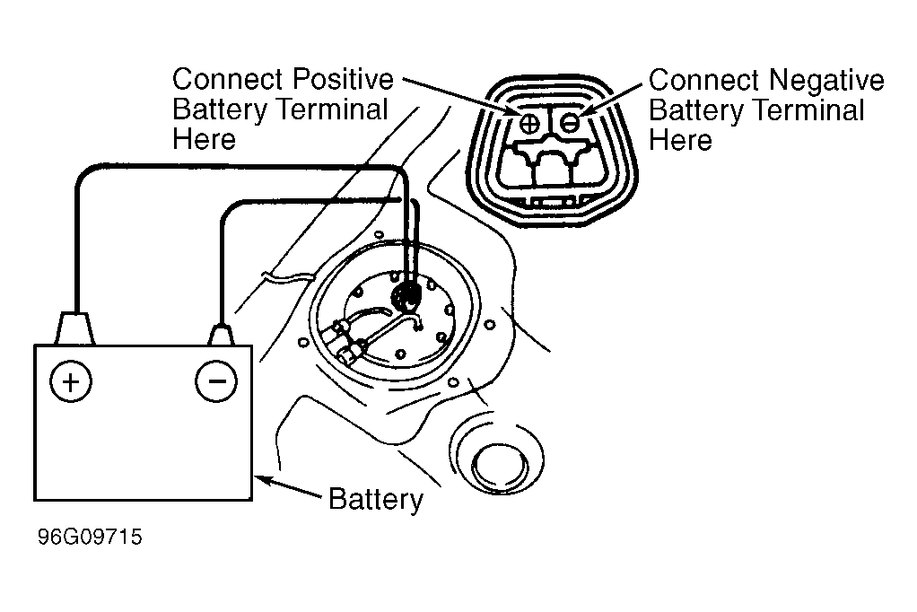 NOTE: Fuel pump may also be activated by connecting battery voltage to specified terminals on fuel pump. See Figure.