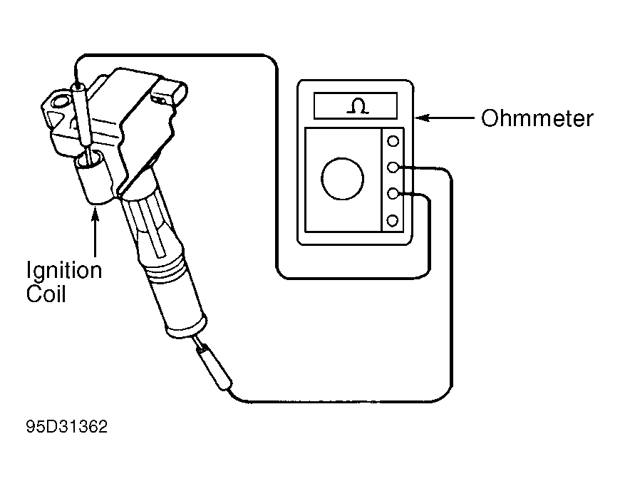 - Using ohmmeter, check ignition coil secondary resistance. See Fig 1 and Fig 2. Replace ignition coil if secondary resistance is not within specification. See IGNITION COIL RESISTANCE table. Reinstall connector on ignition coil.