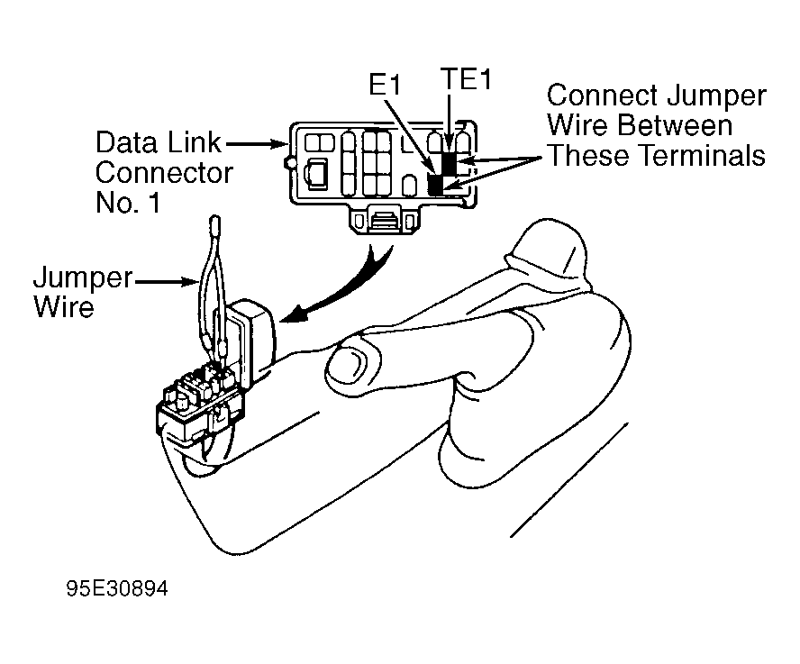 3. Install Jumper Wire (SST 09843-18020) between terminals TE1 and E1 of data link connector No. 1. See Fig 2.